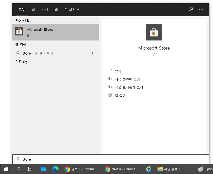 2. 검색되어 나온 Microsoft Store를 실행합니다.